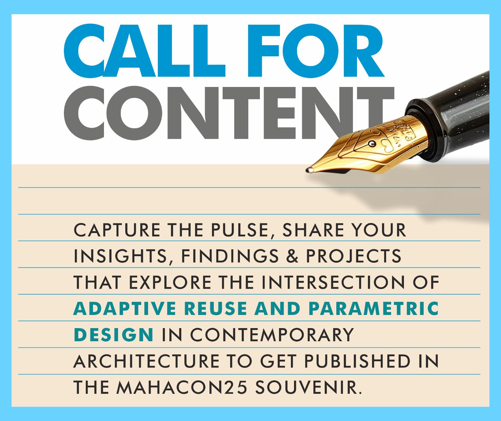 The Souvenir aims at capturing this pulse and sentiment of the “Mahacon 2025” by bringing to you an array of ideas, insights, findings and contributions related to Adaptive Reuse and Parametric Design in the field of Architecture today. In the challenging times today innovative approaches are required to cater to climate change, net zero and environmental impacts of Architecture on one hand and overconsumption on the other. Can the confluence of sustainable approaches and innovative design help in optimization of design, functionality and building performance today?